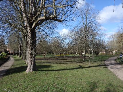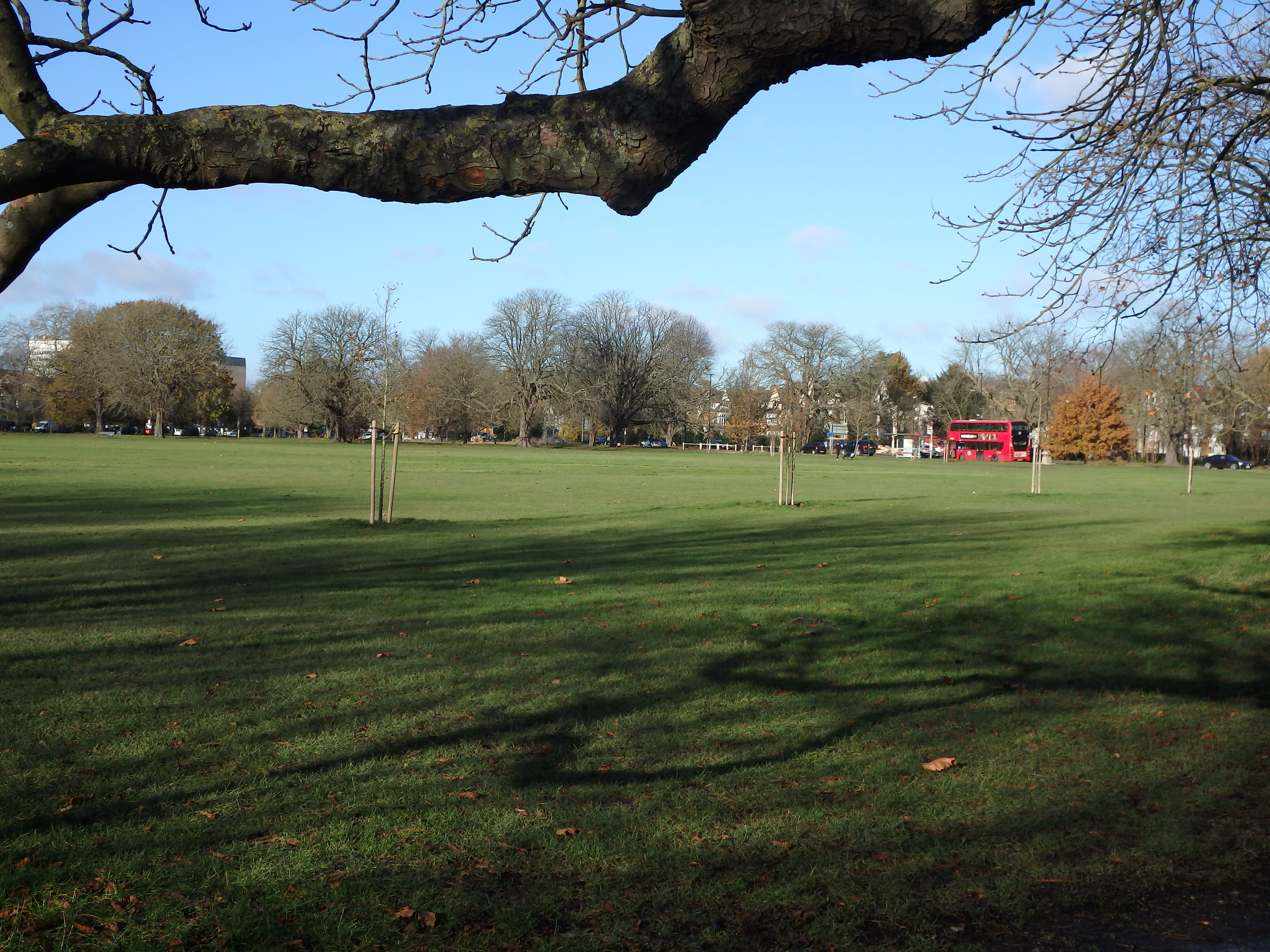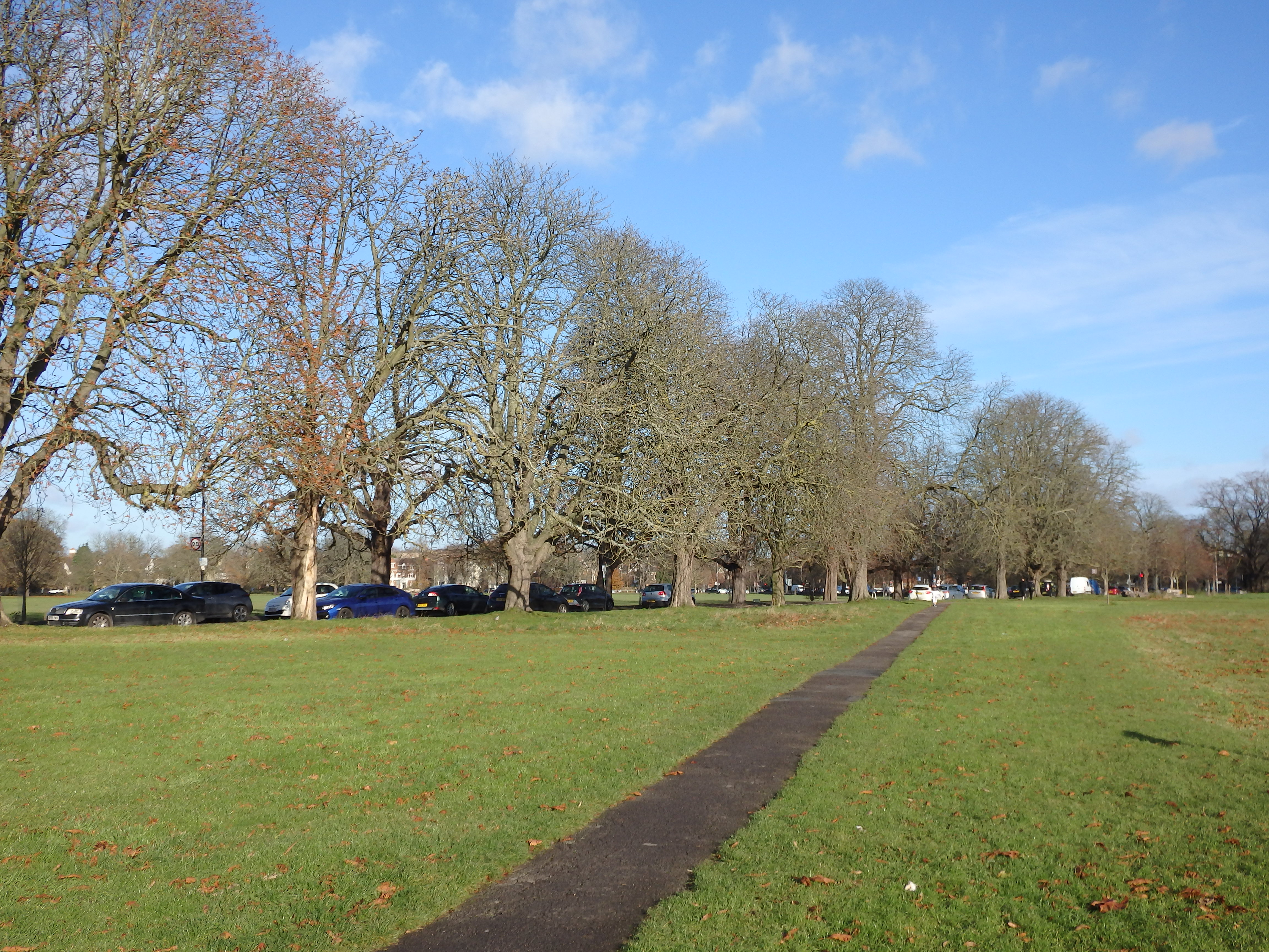 Ealing common is a large flat open area located mainly to the south west of the busy junction where the Uxbridge Road meets the North Circular Road. Although mostly open, there are some interesting trees, and several avenues, presumably planted when Charles Jones was borough surveyor. At the time of writing (December 2021) it appears that aditional rows of trees have been planted relatively recently. Being a large flat area that is easily accessible, the common is occasionally used by visiting fairgrounds and circuses.