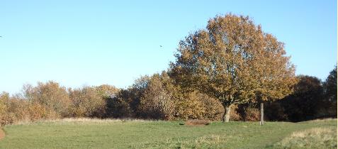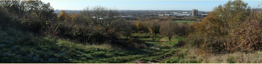 At 85 metres (279 feet) above sea level, Horsenden Hill is the highest point in the borough. It is a popular spot for general recreation and I remember when our children were small it was where we went to fly kites. There are pleasant woodland trails on its lower slopes, and you get some views over the surrounding area although on my most recent visit the trees seemed larger thus obscuring some of the views. But I did get a clear view of Wembley Stadium, with the grand arch erected in the latest rebuilding. The view above looks more or less south west and takes in the more industrial part of Greenford. The open summit area is seen in the photo (right).