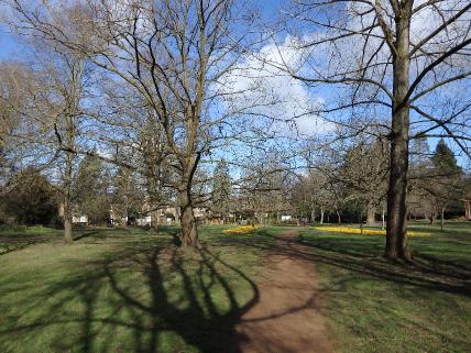 One of my favourite parks in Ealing, although it is quite small, is Montpelier Park. It was originally the grounds of the Princess Helena College, a girls’ school which moved to Ealing from Regents Park in 1882. After it moved again (to Hertfordshire) in 1933, Helena Court was built at the western end of the grounds, and Montpelier Primary school was eventually built at the eastern end (where the original building appears to have been sited). Although there has been some further building on the original grounds, the remainder is still an attractive setting with a wide variety of trees which form a small arboretum.