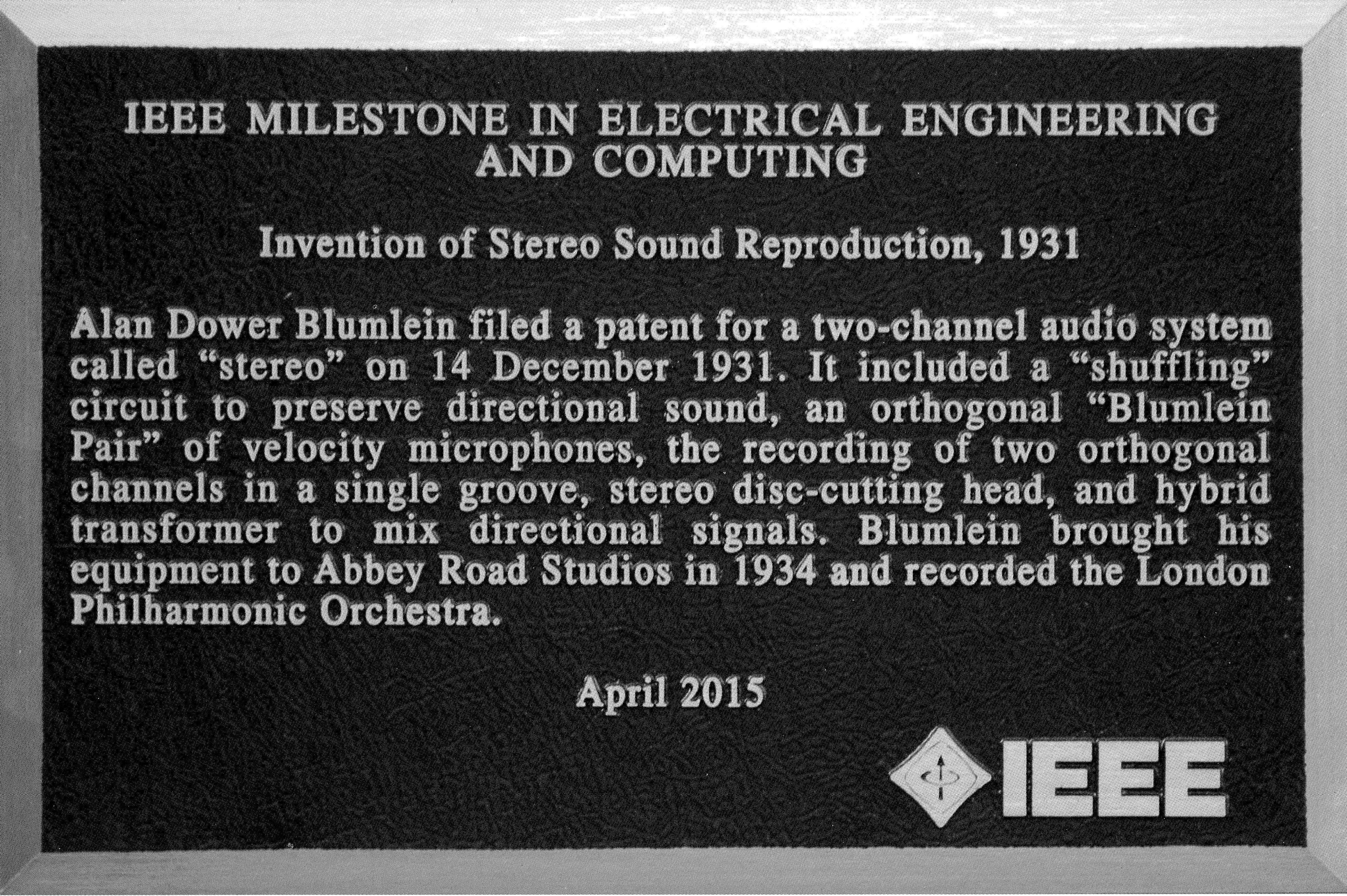 In 2015 he was honoured by the IEEE for his invention of stereo in 1931.