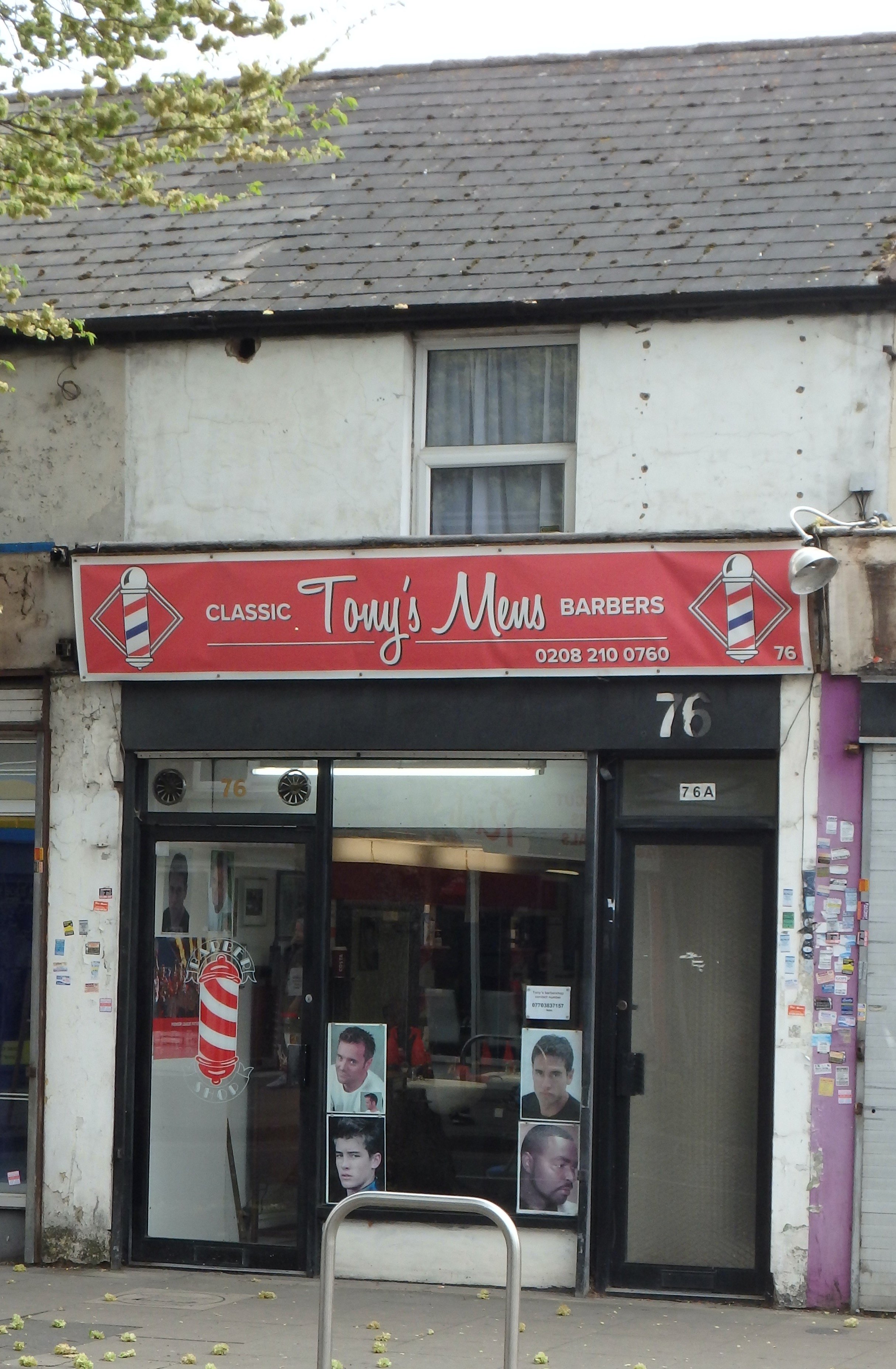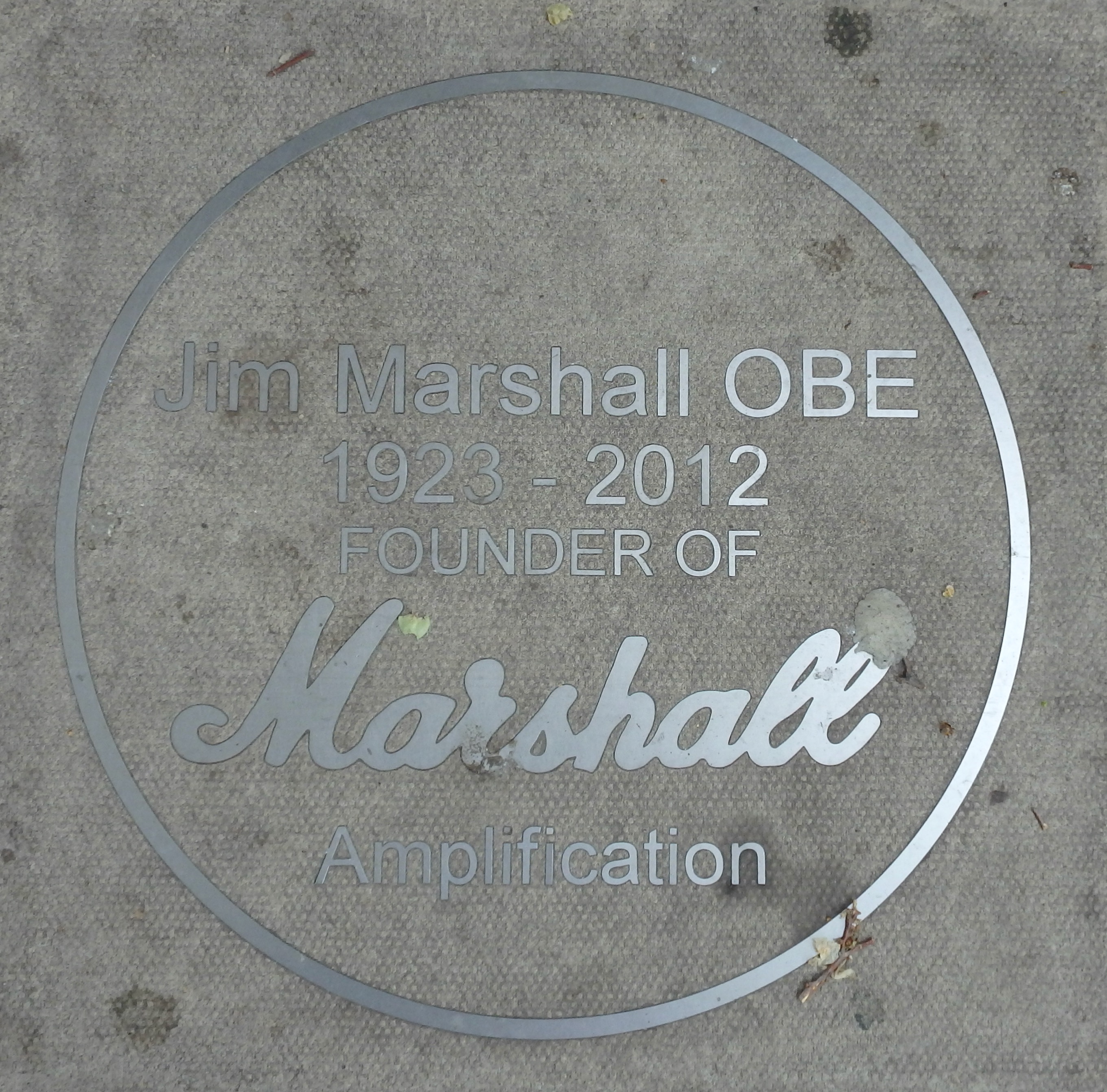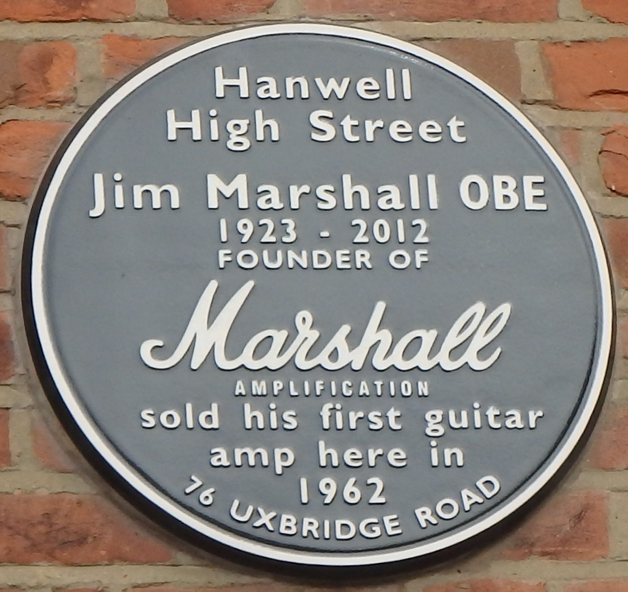 Jim Marshall, famous for the guitar amplifiers which bear his name was born in Acton and later had a small shop at 76 Uxbridge Road in Hanwell. It is now a barbers (below) with the plaque (below right) set in the pavement in front of the door to the shop. The plaque seen below left, is on a building facing the clock tower.