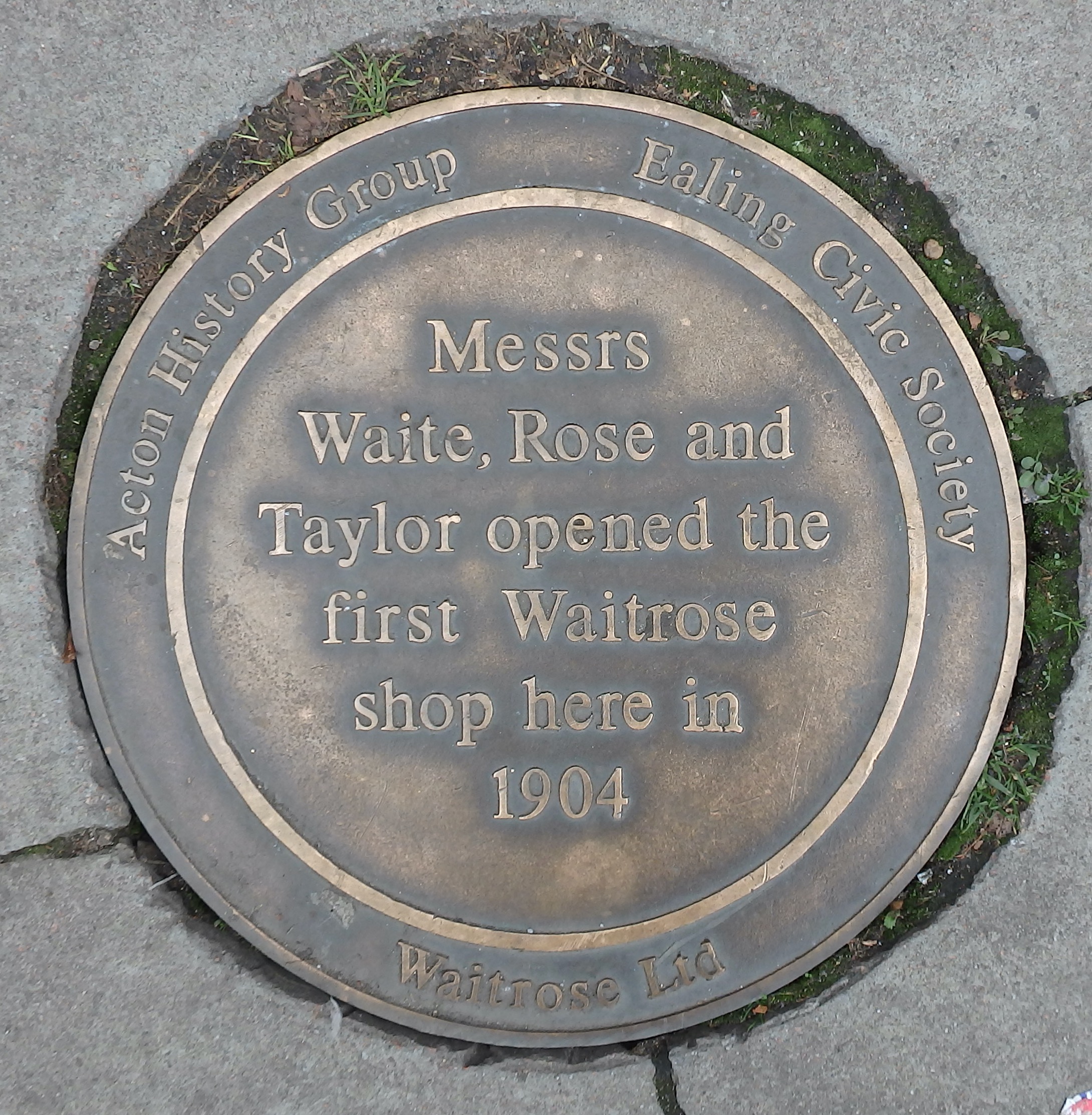 You may be surprised to learn that there is a connection between the Waitrose shops (West Ealing Supermarket shown below) and the rather nondescript shop seen to the left! In fact the very first shop in the chain which became Waitrose, was opened by Messrs Waite, Rose and Taylor, here on Acton Hill, in 1904. Further shops were added to the chain, which was taken over by the John Lewis Partnership in 1937.
