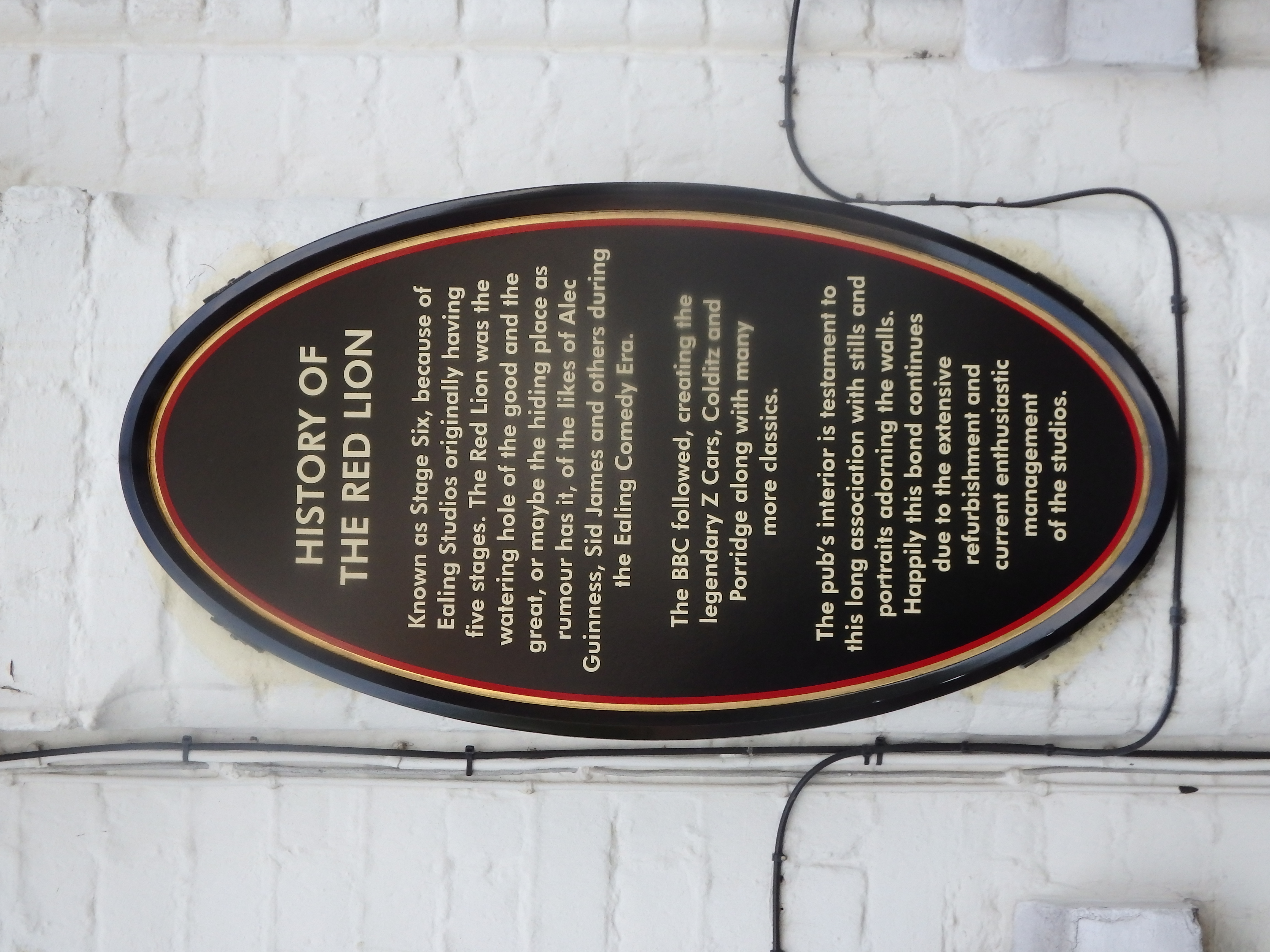 The Red Lion pub just across the road from the studios was so popular with everybody that worked there that it was dubbed "Stage 6" and sports a sign to that effect to this day, though almost hidden behind the hanging basket to the left of the door. (Film studios referred to "Stages" rather than Studios, and there were at one time five stages at Ealing). There is also a plaque on the wall of the pub giving more details of the association between pub and studios.