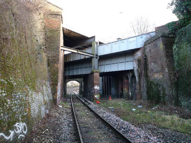 This unique structure carries the Grand union Canal over the Brentford branch railway, and Windmill Lane in turn over the canal. The original bridge carrying the lane over the canal would have been built in the 1790's when the canal was cut, with the triple form being created when the railway was built in the late 1850's.